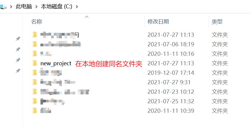 2. 在本地合适的位置创建一个同名文件夹(方便区分)