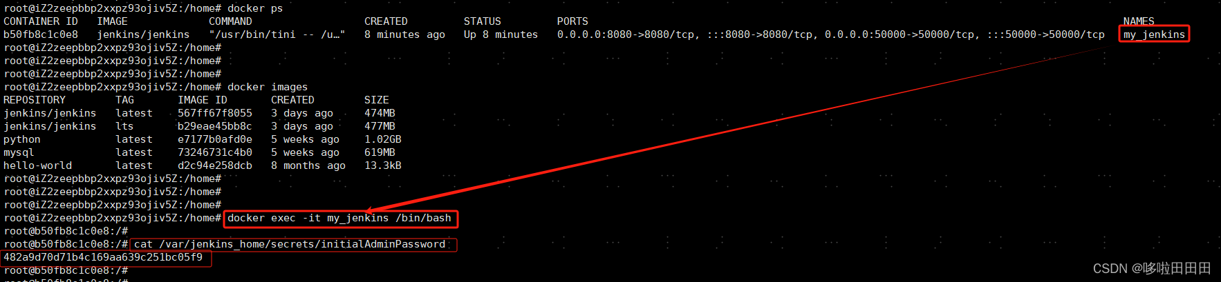 docker exec: 用于在正在运行的容器中执行命令。-it: 表示以交互式方式运行命令,并分配一个伪终端(TTY)。my_jenkins: 指定要执行命令的容器名称或ID。/bin/bash: 指定要在容器中执行的bash shell。通过这个命令,您可以进入正在运行的Jenkins容器内部,以便进行一些特定操作或调试。这将打开一个与Jenkins容器关联的bash终端,允许您在容器内部进行命令行操作。