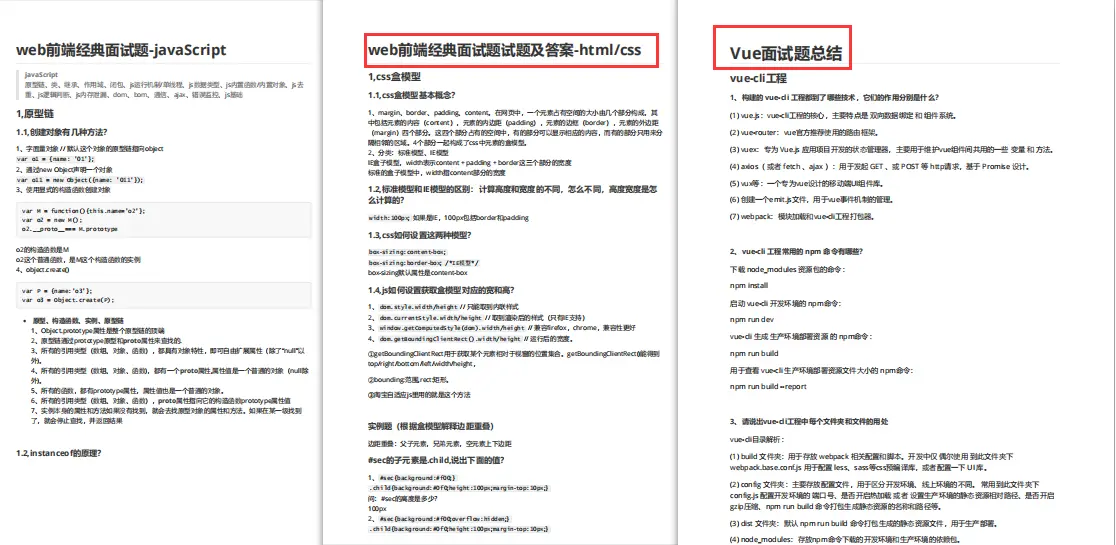 前端CSS面试题文档,JavaScript面试题文档,Vue面试题文档,大厂面试题文档