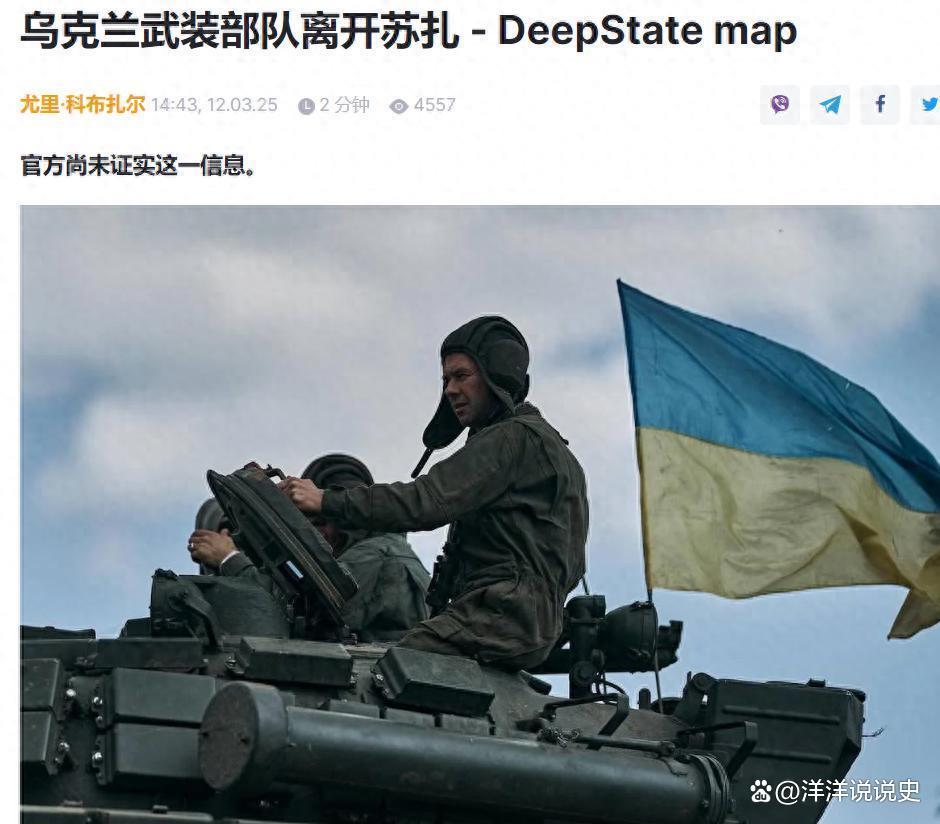 乌克兰军事情报局下属的军事媒体DEEPSTATE3月12日公布的最新战场动态地图显示,乌军已经撤离苏贾主城区和工业区,乌军指挥部215天来人力物力巨大的投入,最终都变成了一场空!